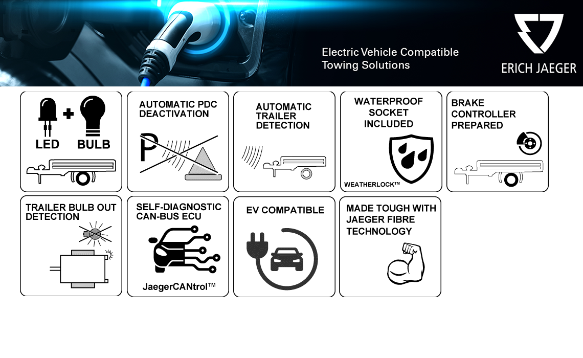 Erich Jaeger Asia Pacific is pleased to announce we have a new catalogue section for EV compatible towing solutions dedicated to the increasing number of BEV and Hybrid models available in this region.